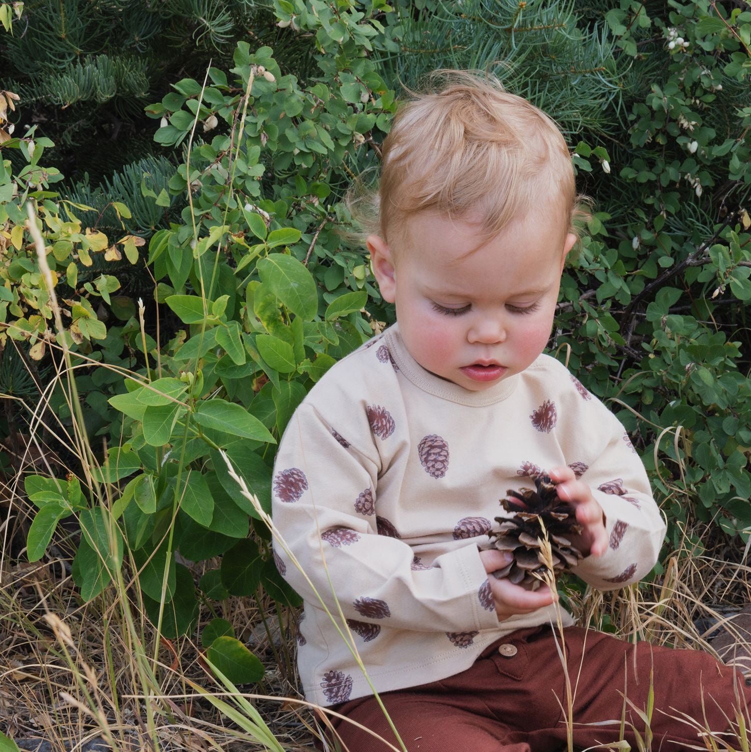 Our classic 100% combed cotton bodysuit gets an update with our fall pinecones print. Perfect for layering under overalls for wherever your fall and winter adventures may take you.